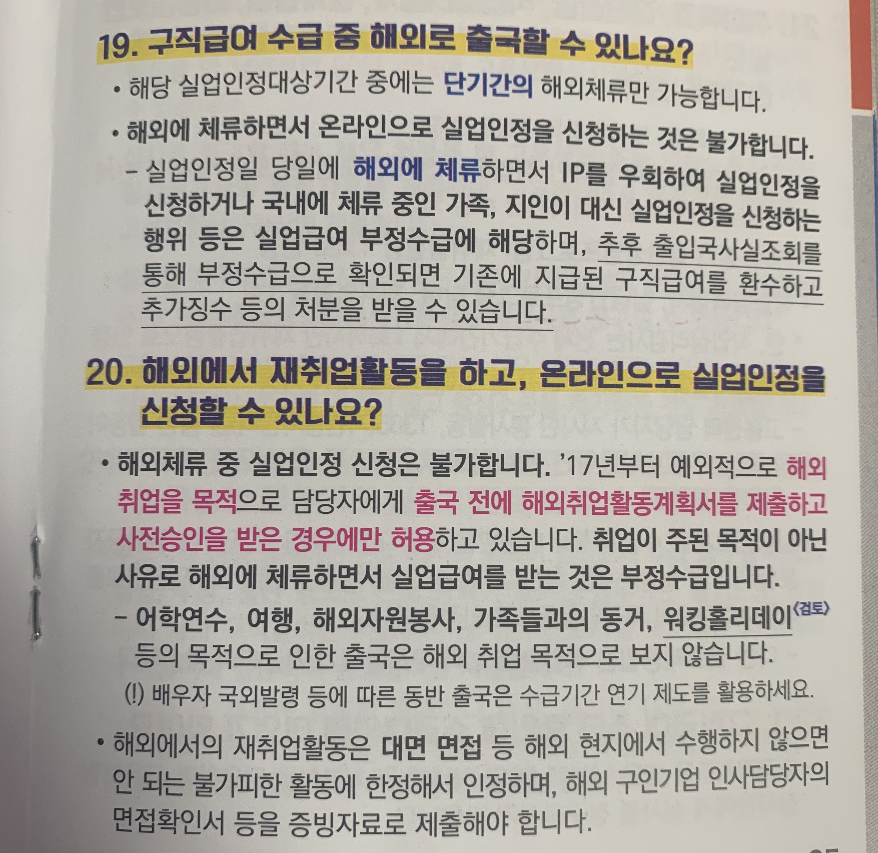 1. 실업 수급 기간 동안의 해외 체류 제한