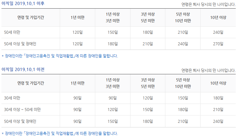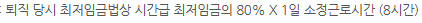 이직일이 2019년 10월 1일 이전은 퇴직 당시 최저입급법상 시간급 최저임금의 90% * 1일 근로시간(8시간)